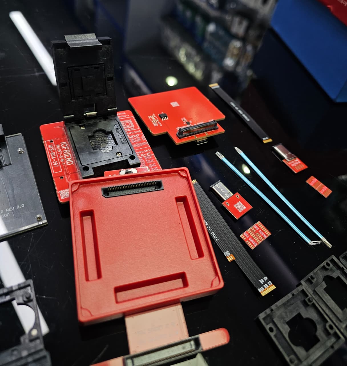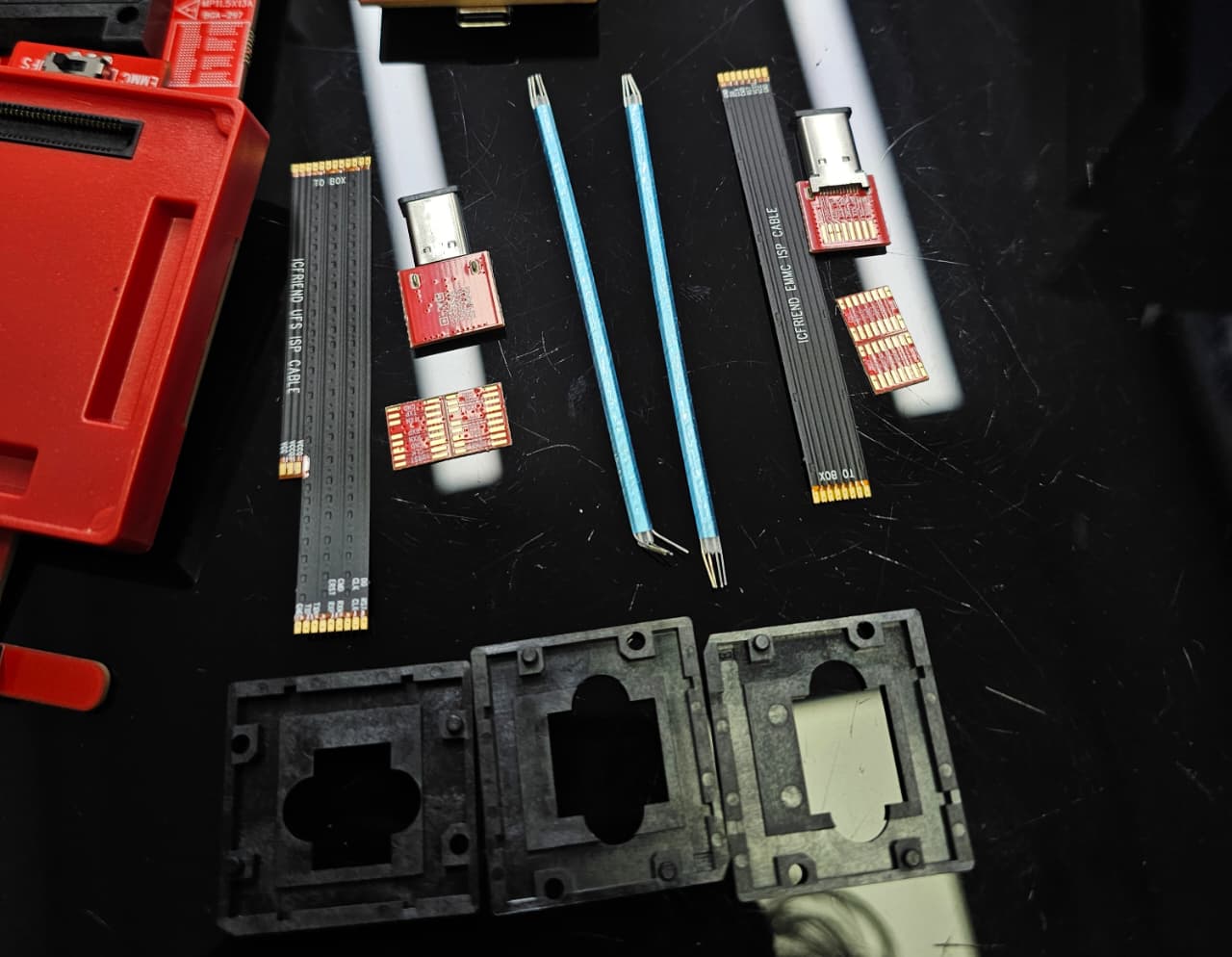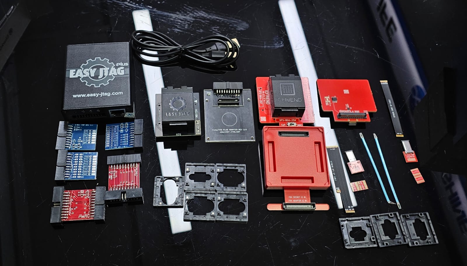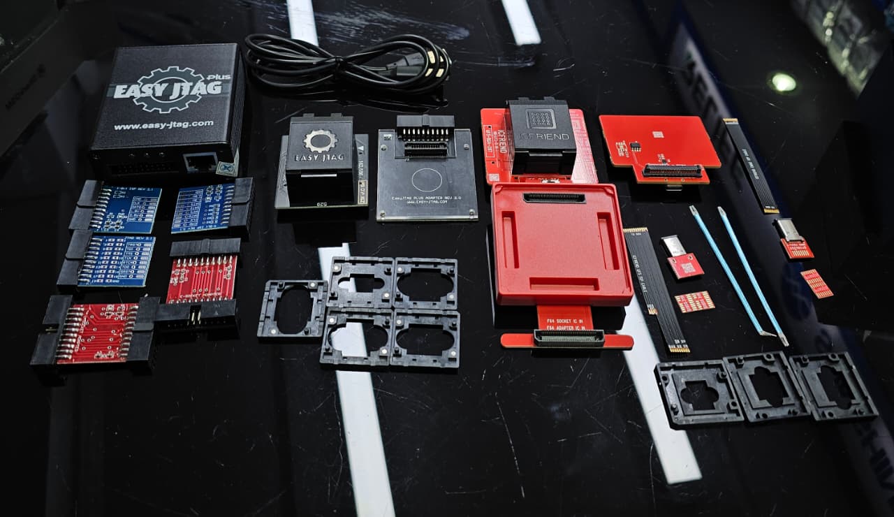 The new ICFriend 4-in-1 Adapter for Easy Jtag Plus Box will enable the user to work with newer UFS chipsets, and let you read/write data, etc. Support UFS-BGA-153 and UFS-BGA-153 (UFS 4.0) / uMCP-BGA-254 / uMCP-BGA-297, need use with Easy Jtag Plus Box
