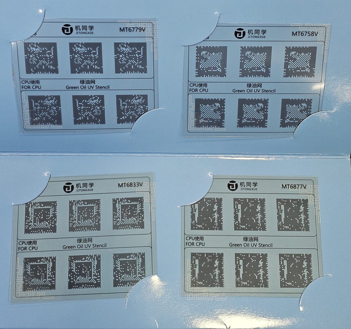 Then put the green oil stencil (the printed side) down against the pads, and the pads on the green oil net are aligned with the pads on the chip or the motherboard.